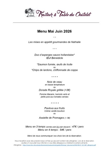 Le Traiteur du Châtelet à Malmedy, ce sont des menus/plats à emporter ou à déguster sur place, uniquement sur réservation via notre site…